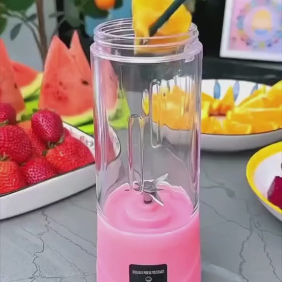 - [ EASY TO USE & CLEAN ]:- This mini juice blender grinder is easy to operate with just one button. tap the switch twice to turn on the device. while working, shake the bottle at 45 degrees to better mix it. the one-time stirring time is 30 seconds. the portable blender can be opened up and down. open the lid to drink, and open the bottom to clean.